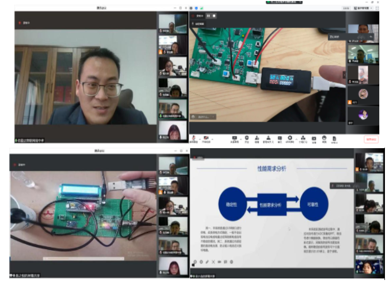 答辩工作分成4个小组,分成线上和线下两个环节。首先组织在校员工进行线下答辩,之后组织非在校员工进行线上视频答辩。答辩过程中,来自公司校级老员工校外实践教育基地共建单位——洛阳牡丹通讯股份有限公司的常文廷等企业导师,来自郑州信盈达电子有限公司总经理周中孝等行业专家,全程网络参与并对毕业设计进行指导。