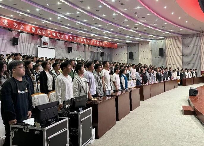 2024级新生代表万翱鹏带领2024级全体新生进行青春宣誓。