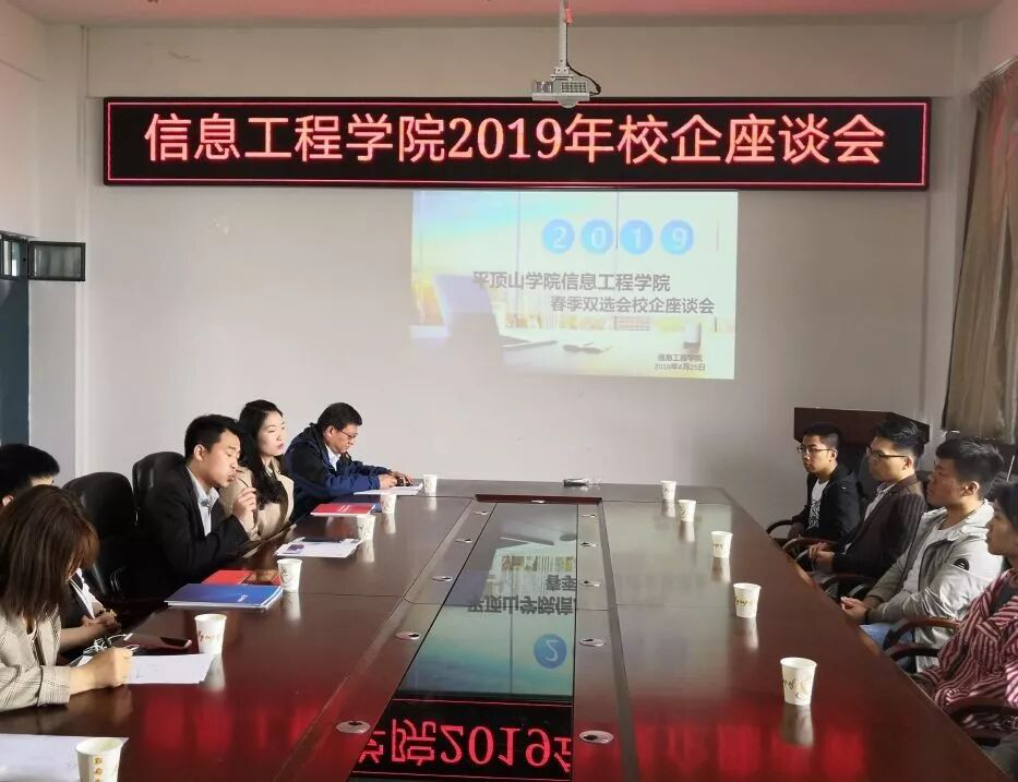 2019年4月25日下午3点,信息工程学院在4214会议室召开校企合作座谈会。河南八六三软件技术股份有限公司、郑州智游爱峰科技有限公司、洛阳群客电子商务有限公司等企业代表以及学院部分老师、员工参加了本次会议。