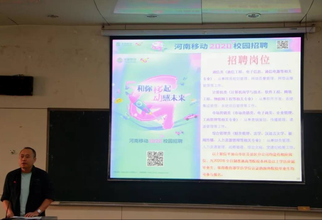 2020年10月14日下午4点,谈球吧在4206召开了2020中国移动专场校园招聘会。17、18级通信电子专业同学参加了此次招聘会。