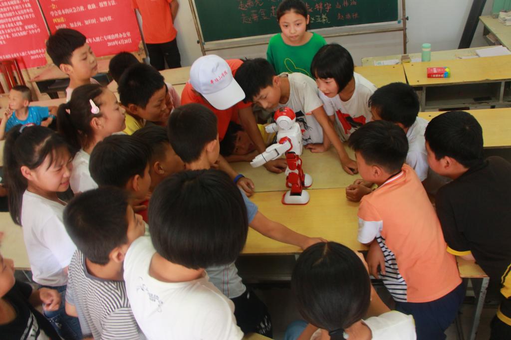 志愿者为孩子们展示机器人“小e”——拍摄者:刘浩哲
