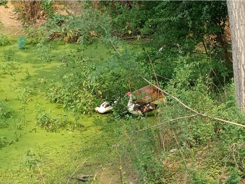 志愿者调研时发现,村子附近河道已经干涸,附近池塘内水质不佳,水环境问题对周边环境造成一定程度的不良影响。志愿者向周边村民们了解到,大家希望河流及水环境状况都能得到进一步改善。综合分析后,志愿者认为想要改善水环境问题,需要村民集体更深入的关注和更大力度的行动,比如通过修正河道,修建水塘引水排水系统,利用打捞、絮凝除藻、生物控藻等方式,抑制水华现象的发生,从而该善该地的水环境问题。