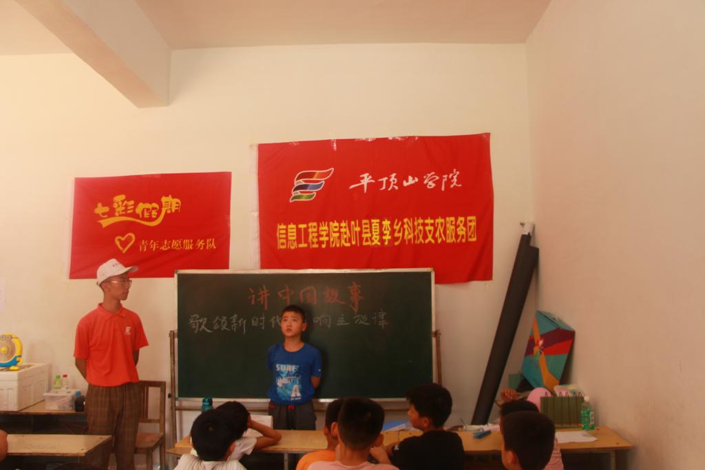 为弘扬中华优秀传统文化,发扬伟大民族文化精神,2019年7月15日上午,平顶山学院谈球吧“三下乡”科技支农服务团开展以“讲中华故事,做如歌少年”为主题的支教活动。