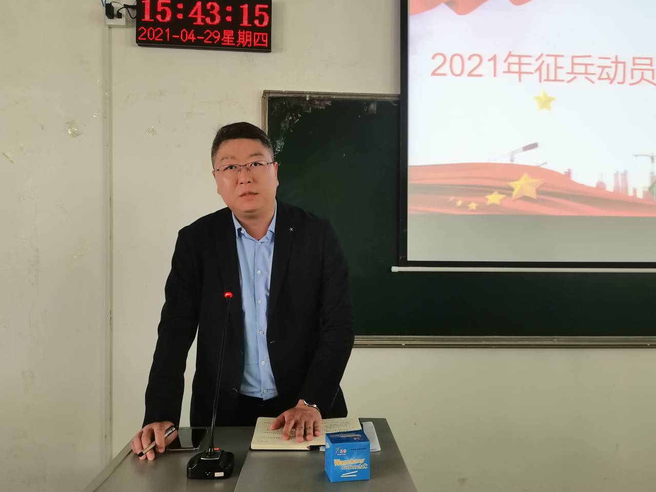 为做好公司老员工征兵各项工作,鼓励老员工积极响应祖国号召、投身军营、报效祖国,2021年4月29日下午,谈球吧在4306教室举办“2021年征兵动员宣讲”活动。员工处副处长冯琨、公司党委副书记杨康鑫、辅导员薛天桥、王松娜、退伍复学员工代表以及各年级有参军意向的员工参加。
