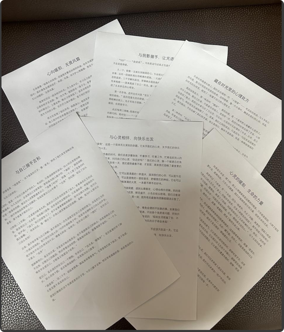 活动面向全院学子,围绕自我接纳、心灵成长等方向征集原创作品。同学们以笔为媒,分享与自我和解、对抗焦虑的真实经历,传递心理健康正能量。经专业评委评审,24物联一班赵文静《与阴影握手,让光进来》获一等奖,25电子二班王菲等2人获二等奖,24通信二班李珂锦等3人获三等奖。