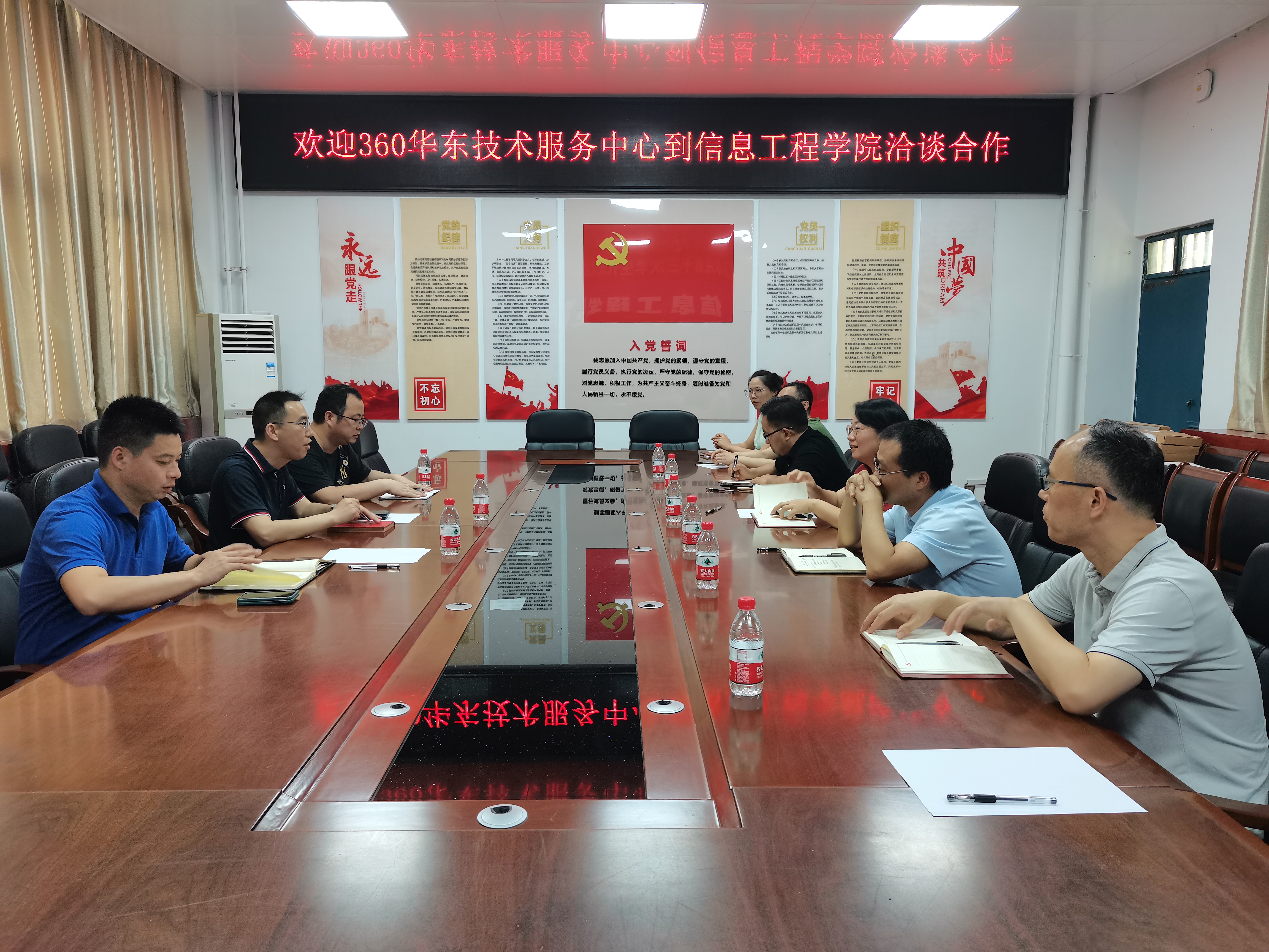 6月27日下午,360华东技术服务中心总经理陈家军率队来谈球吧洽谈合作。公司党委书记王向前、经理樊爱宛、副经理时合生、副经理胡海峰、飞行器与信息工程教研室主任周志青、组织员崔兵、团委副书记刘柯老师参加了会议。